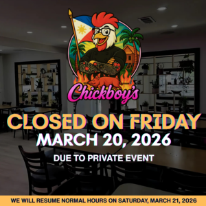 You are very smart man. Your everything! From catering, decorating and event planner. Thank you! And thank you for all the Chickboy Staff. We love you all 😘😘 me and my husband we appreciate everything you guys do..